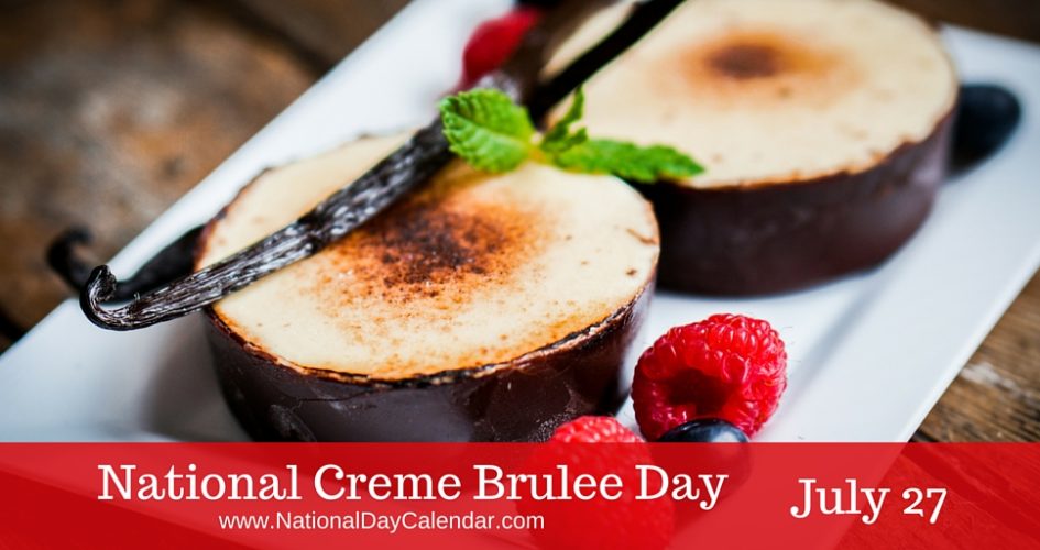 Who loves creme brulee? National Creme Brulee Day is observed annually on July 27th! Get ready to enjoy a dish of this mouth-watering creamy dessert. Creme brulee is also known as burnt cream, crema Catalana, and Trinity creme. It is a dessert that consists of a rich custard base that is topped with a contrasting layer of hard caramel and served at room temperature. Here is a creme brulee recipe to make: https://www.allrecipes.com/recipe/19165/creme-brulee/ If you would like to find out more about this National Creme Brulee Day click here: https://nationaldaycalendar.com/national-creme-brulee-day-july-27/