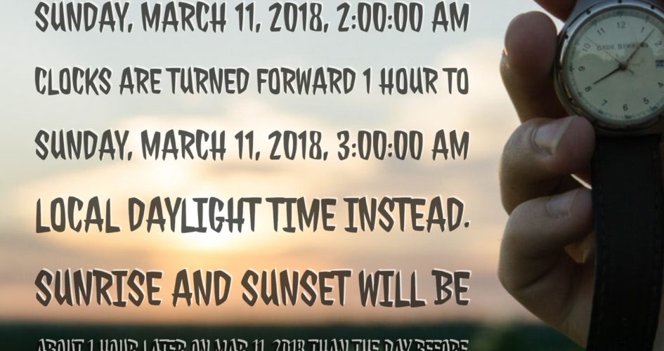Don’t forget to SPRING FORWARD – March 11 2018!