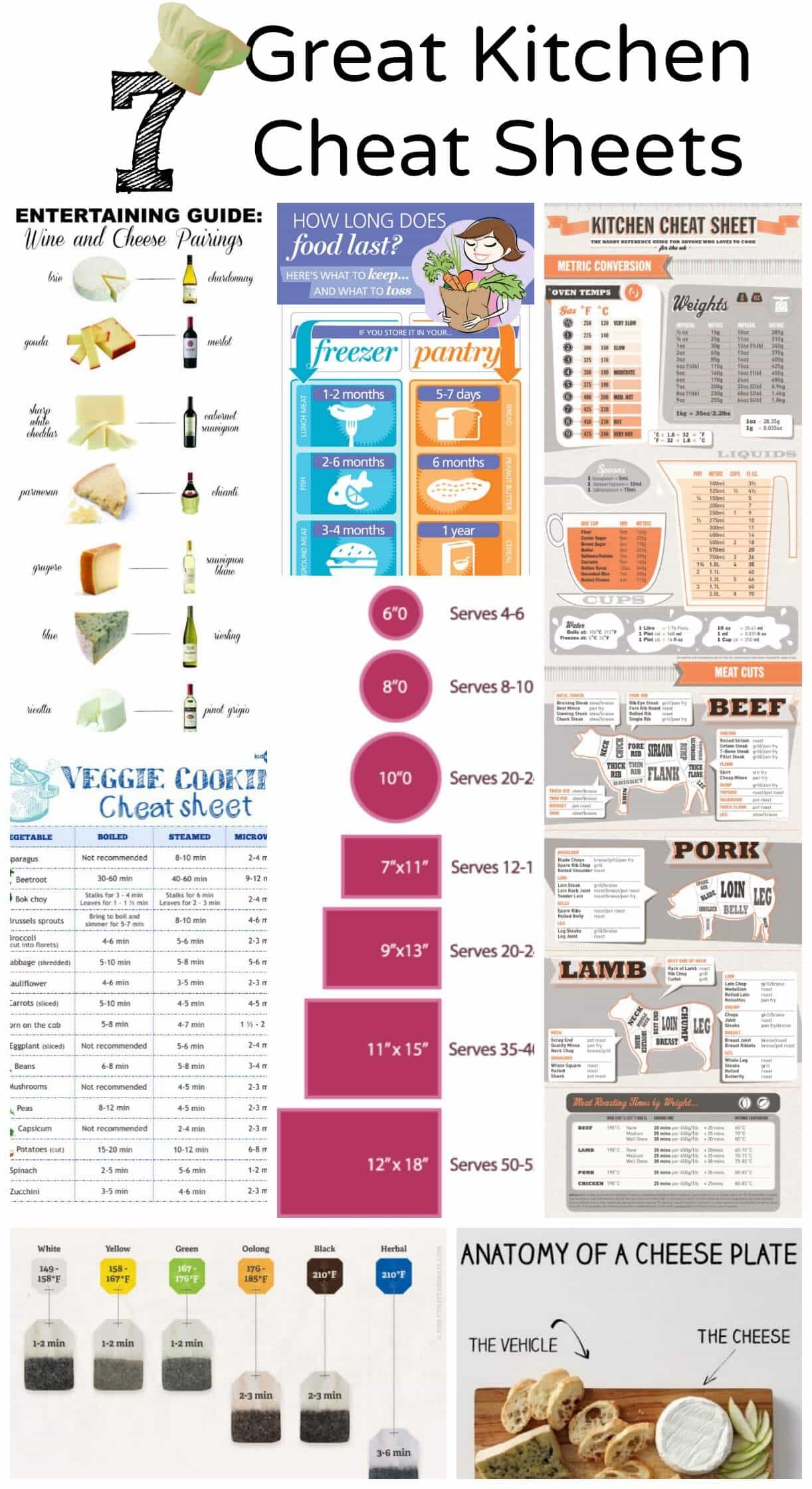 How long until a certain food goes bad? How do I convert ounces to cups? What kind of wine do I serve with a certain type of food? The internet is GREAT for those types of questions, but wouldn’t it be nice to just have those cheat sheets on hand for whenever you need them?