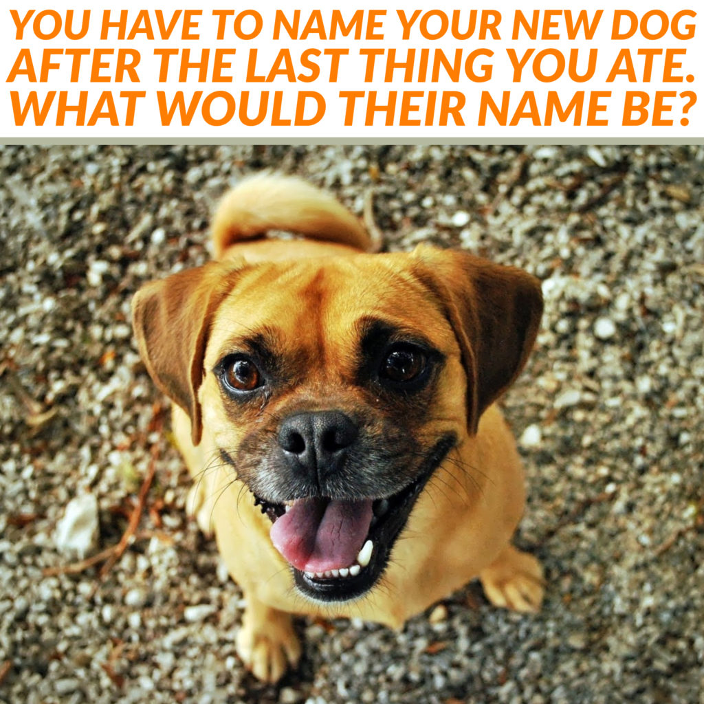 You have to name your new dog after the last thing you ate. March 29, 2021 Post All Grocery What would their name be?